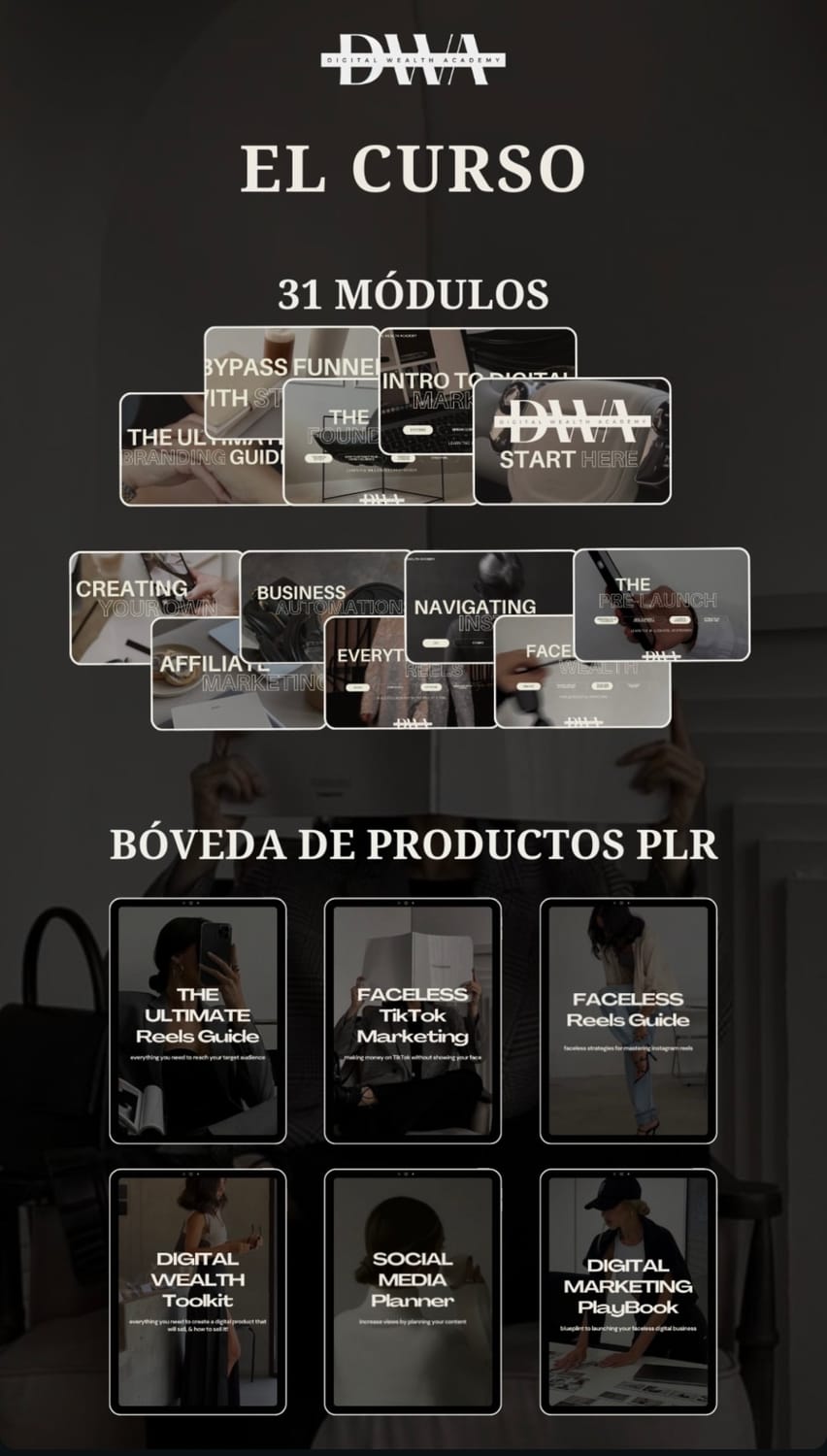 DWA es el curso de marketing digital que yo te ofrezco, te enseña todo sobre marketing digital, como vender productos digitales, creacion de contenido, como hacer páginas web para este negocio y para cualquier otro negocio que ya tengas o que tendrás en el futuro, como hacer crecer organicamente tus redes sociales y todas las habilidades que necesitas para luego revenderlo obteniéndo el 100% de cada venta.
